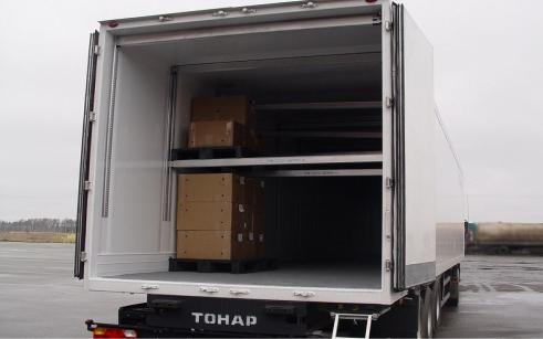 загрузка, возможностьбАрегулирования «верхней полки» внутри кузова, в зависимости от перевозимого груза. Стойки, поддерживающие «верхнюю полку» почти не сокращают внутреннее пространство кузова, и при этом не вдаются в термоизолирующую панель, тем самым не вызывая потерю тепла. Самой главной особенностью является возможность установки на данную модель холодильной системы [5].