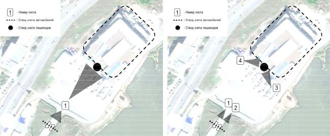 период их функционирования в течение суток с небольшим запасом времени не более получаса до начала и после окончания. В некоторых случаях территория / ЦМТ не полностью освобождается в ночной период времени, например, парковка перед объектами торговли в ночное время используется жильцами прилегающей жилой территории, в таких случаях перед началом обследования все номера «ночных» транспортных средств переписываются отдельно для того чтобы их исключить из общей статистики эксперимента. В целом, следует отметить, что чем больше территор я / ЦМТ, тем сложнее учесть всех посетителей в течении суток.