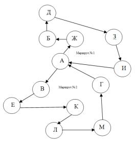 Этап 3 сводится к определению последовательности объезда пунктов маршрута [1, 5]. На данном этапе все пункты маршрута, начиная с пункта А, необходимо связать замкнутой линией, которая соответствует кратчайшему пути объезда этих пунктов.