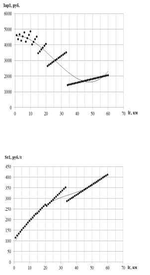 Abstract. Dependence of the cost of rental vehicle and costs of one ton of |