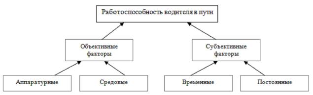 СРис. 3. Основные факторы, влияющие на работоспособность водителя в пути