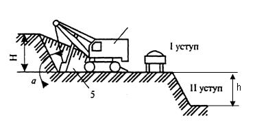 ды; 2 – экскаватор; α – угол от- |