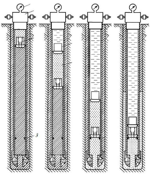 СРис. 2.15. Стадии одноступенчатого цементирования |