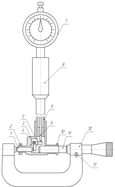 –микрометр; 13 – стопор