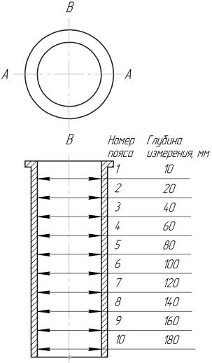 Рис. 7. Схема измерения цилиндра двигателя при построении кривых износа