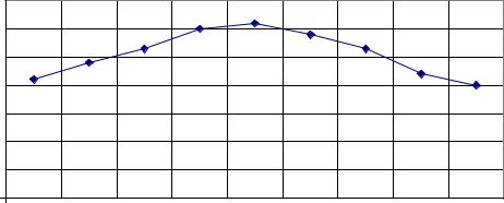 Анализ графика, изображенного на рис. 3, показывает, что при увеличении факторного показателя Х значения результативного показателя У возрастают до определенного уровня, а потом начинают снижаться.