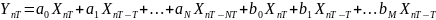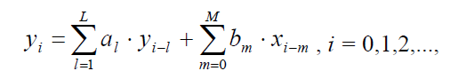 А. Пусть на вход ЦФ подается входной сигнал xn=X(nT) в виде последовательности числовых значений, следующих с интервалом дискретизации Т. Тогда выходной сигнал ЦФ Yn =Y(nT) записывают в виде линейного разностного уравнения: