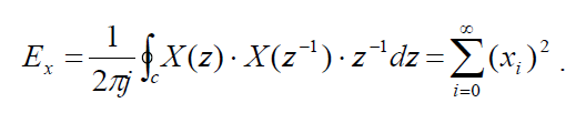 Равенство Парсеваля. Данное равенство позволяет определить энергию Ex дискретно-непрерывного сигнала как по его Z-изображению X(z), так и по последовательности {xi}.