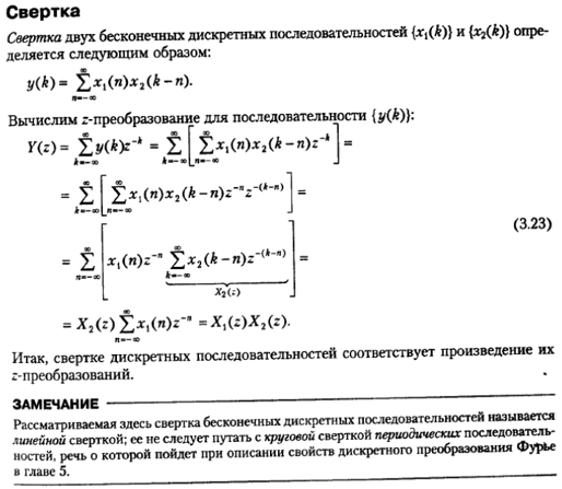 Z-преобразование свертки. Для последовательностей {xi} и {yi} свертка определяется следующим соотношением
