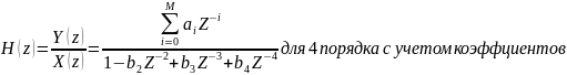 (Лаб26-1). Записать разностное уравнение и системную функцию для нерекурсивного ЦФ 4-го порядка с коэффициентами b0=b1=0, b2≠0, b3≠0, b4≠0