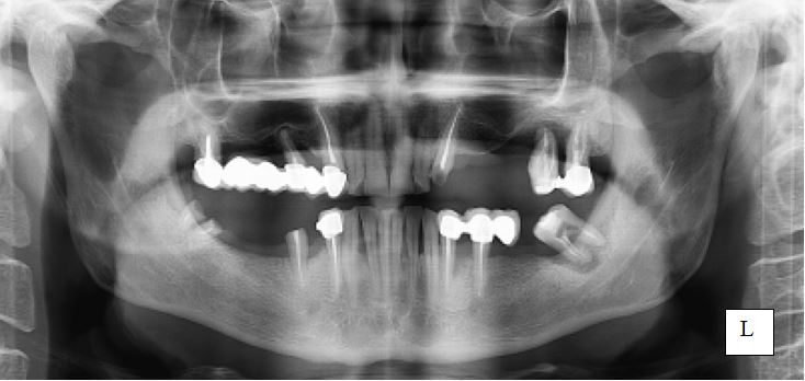 Анамнез развития заболевания. Обратил внимание на изменение слизистой оболочки полости рта неделю назад. Болевых ощущений не отмечает. Причину назвать не может. 2 года назад изготовлен мостовидный протез на верхнюю челюсть в месте отсутствующего 2.6 зуба.