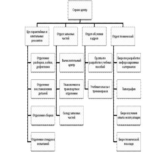 Структура службы сервиса обычно представлена центральным и периферийным аппаратом. Последний максимально приближен к основным местам эксплуатации приобретаемой у изготовителя техники.