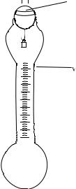 Определение набухания проводится в приборе, состоящем из двух стеклянных шариков, соединенных градуированной трубкой объемом 2 мл (рис. 3). Через отверстие верхнего шарика заливается растворитель до верхней метки трубки (V1).