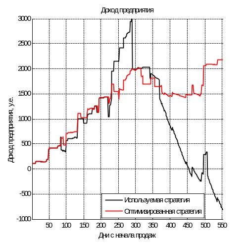 Из графиков видно, что оптимизированная стратегия дает более стабильный доход для предприятия, но снижает его максимальную прибыль.