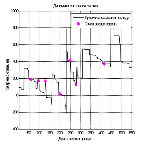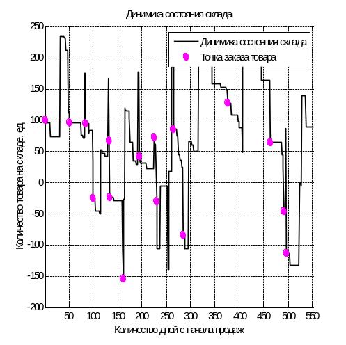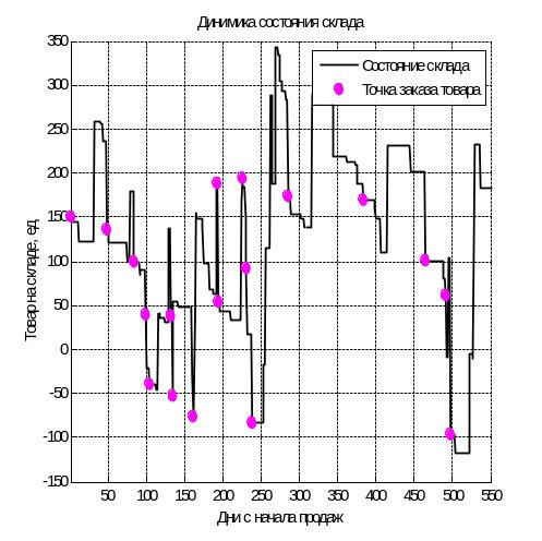 Так как срок доставки заказа равен 30 дням, оптимальной точкой заказа выберем тот момент времени , в который выполняется условие: