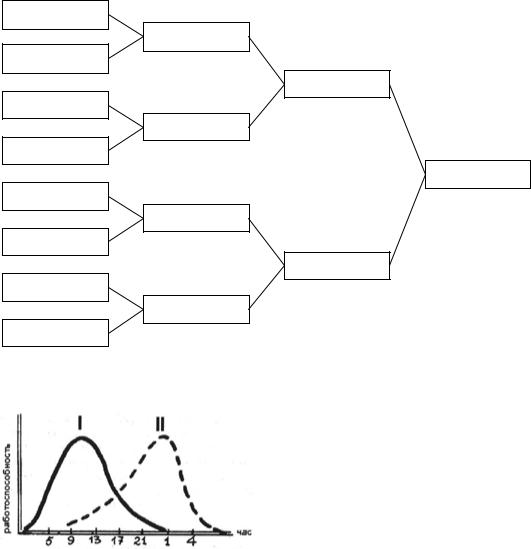кровяного давления и т.п.) факторов. Колебания работоспособности в течение суток соответствуют биологическим ритмам организма (рис. 1.)