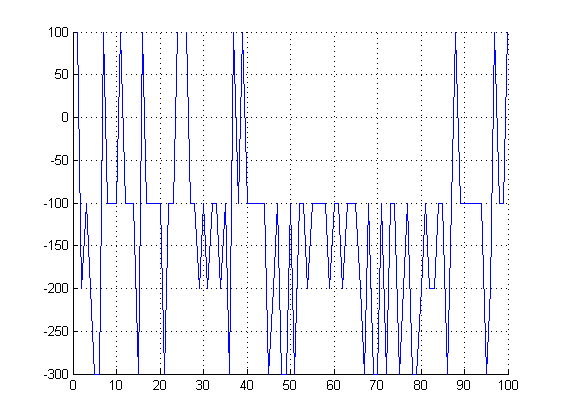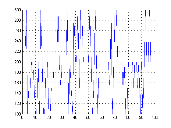 j=[1:1:K]; plot(j,Res(j),'r'); sum(Res)/100
