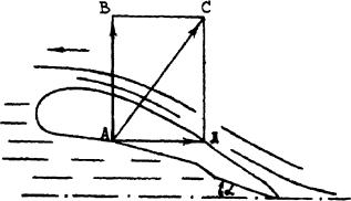 Рис. 1.1 Образование подъемной силы: АВ – подъемная сила; АС – полное сопротивление; АД – лобовое сопротивление; α – уголатаки