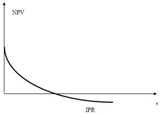 Рис. 2. Зависимость между чистой дисконтированной стоимостью и процентной ставкой.