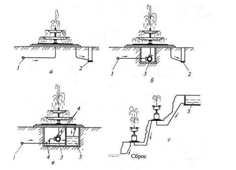 Рис. 3. Схемы водоснабжения фонтанов: