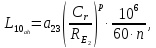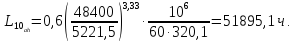 Расчетный ресурс более нагруженного подшипника опоры В, при обычных условиях нагружения а23=0,6.