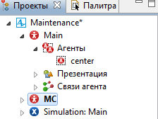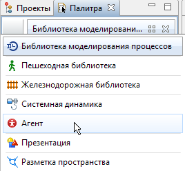 Теперь добавим сервисный центр. В панели Палитра выбираем раздел агент (рисунок 1).