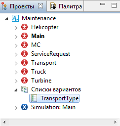 Переходим в панель «Проекты» и открываем двойным щелчком тип агента Transport.