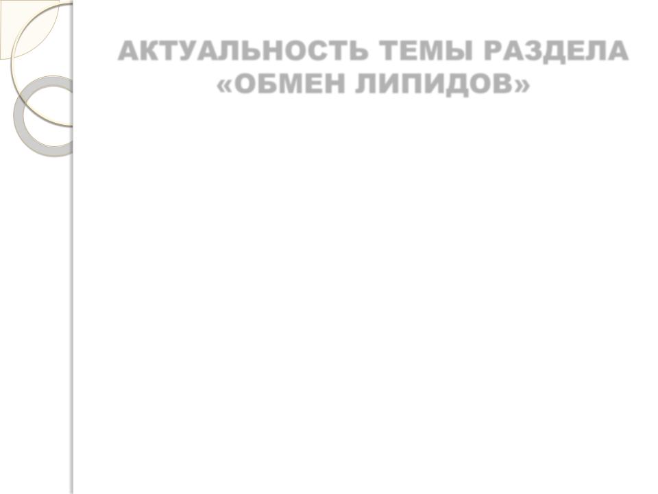 АКТУАЛЬНОСТЬ ТЕМЫ РАЗДЕЛА «ОБМЕН ЛИПИДОВ»