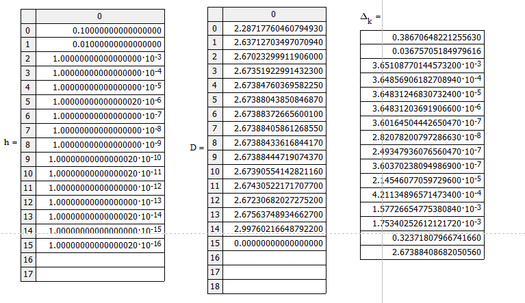 Задача 1.1.Исследовать поведение погрешности формулы численного дифференцирования при уменьшении величины h, определяющей приращение аргумента.