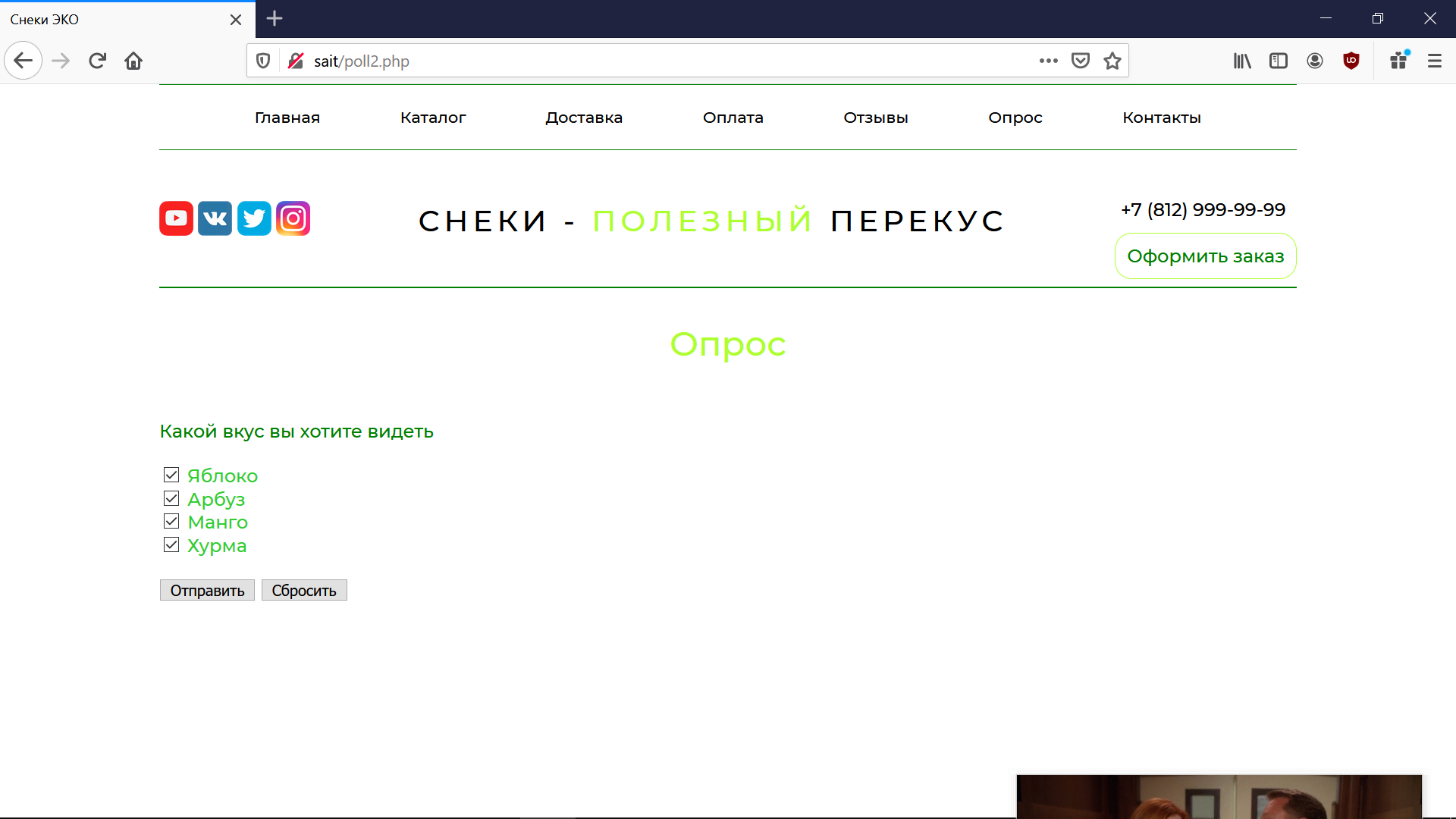 Было создано 2 файла poll2.php и сheckbox.php, их содержание представлено в листинге 3 и 4 соответственно. Через Open server открыт созданный файл poll2.php, результат представлен на рисунке 3.