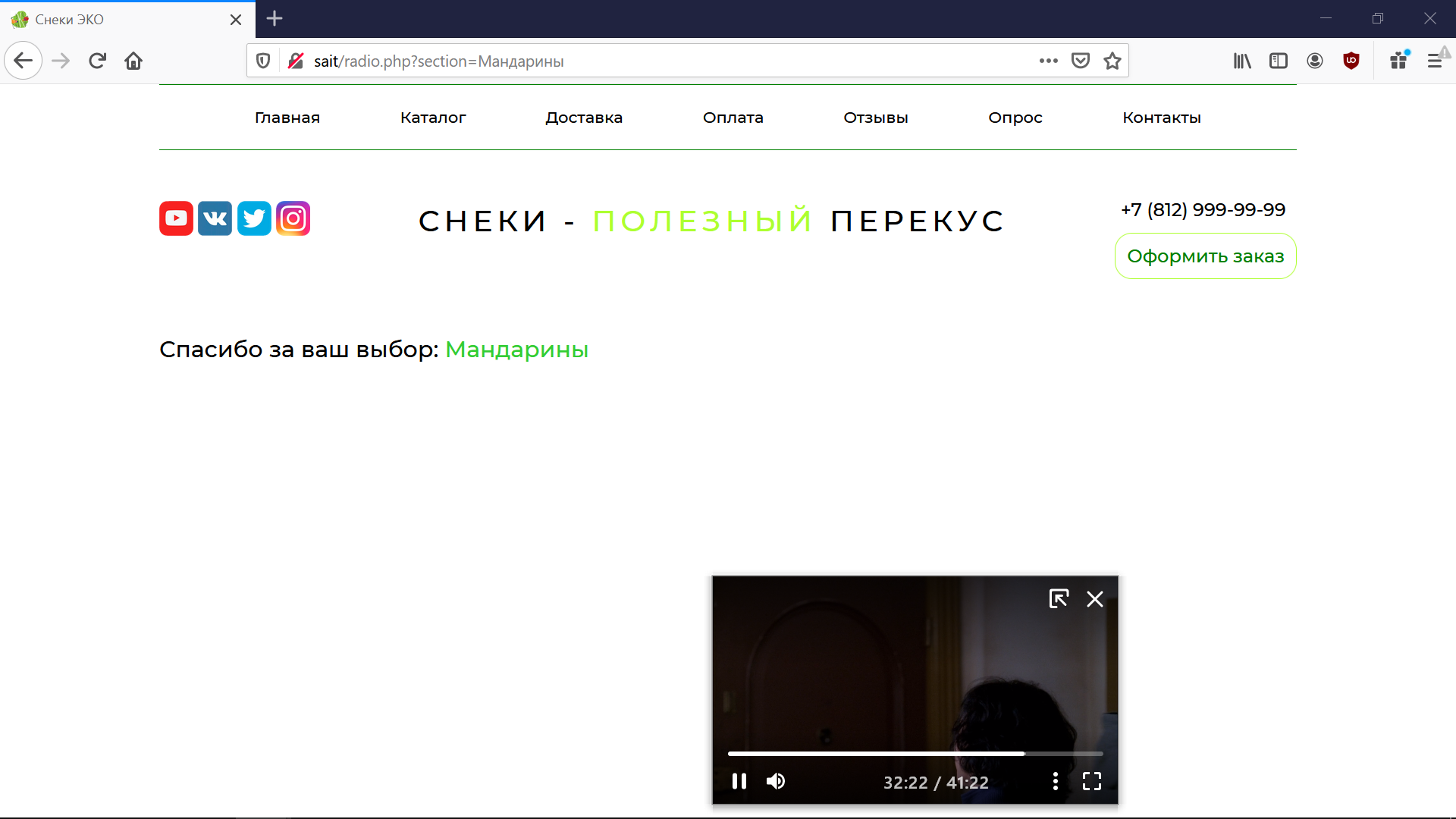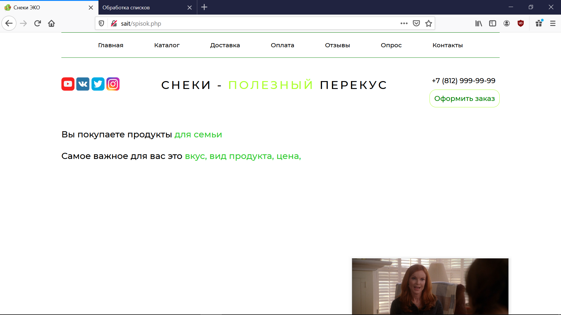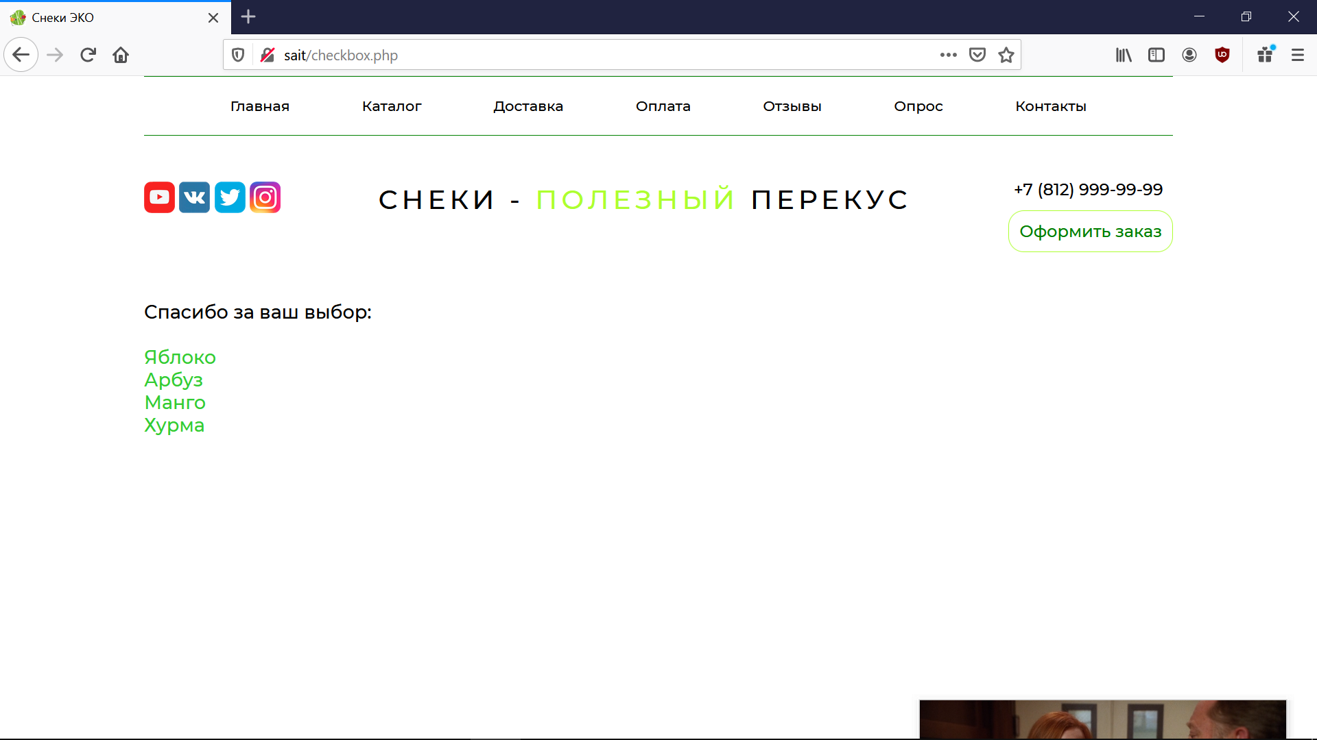 После выбора переключателя, данные были отправлены на сервер. В окно браузера выведены содержания тех переменных, напротив которых посетитель сайта поставил «галочки». Результат работы представлен на рисунке 4.