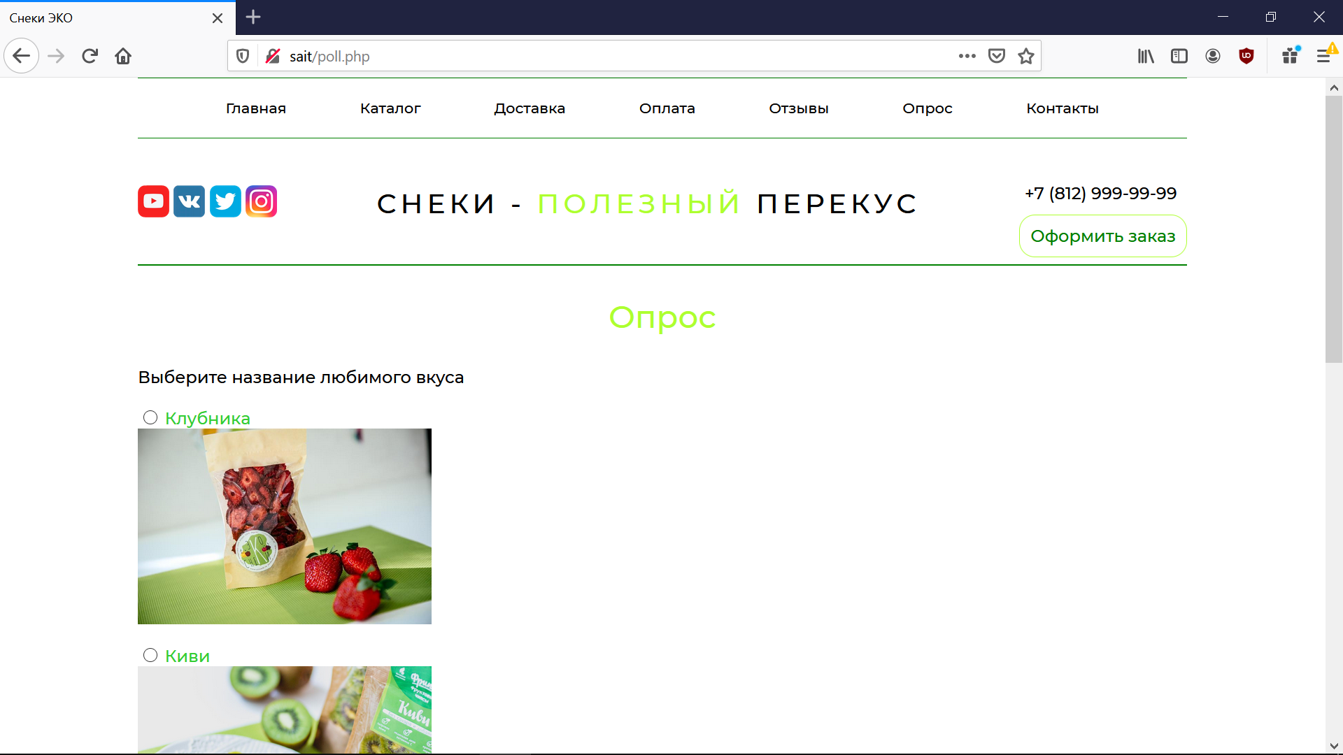 На сайт была добавлена новая вкладка «опрос». Было создано 2 файла poll.php и radio.php, их содержание представлено в листинге 1 и 2 соответственно. Через Open server открыт созданный файл poll.php, результат представлен на рисунке 1.