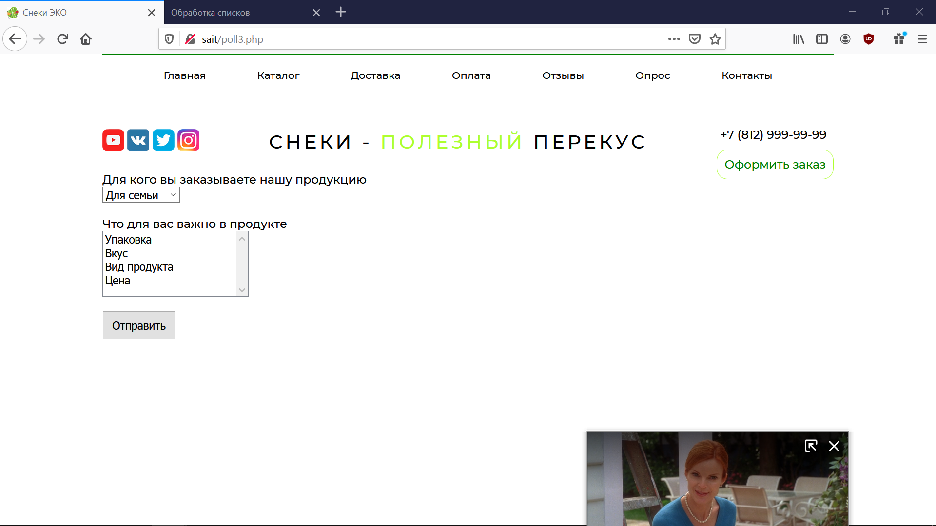 Было создано 2 файла poll3.php и spisok.php, их содержание представлено в листинге 5 и 6 соответственно. Через Open server открыт созданный файл poll3.php, результат представлен на рисунке 5.