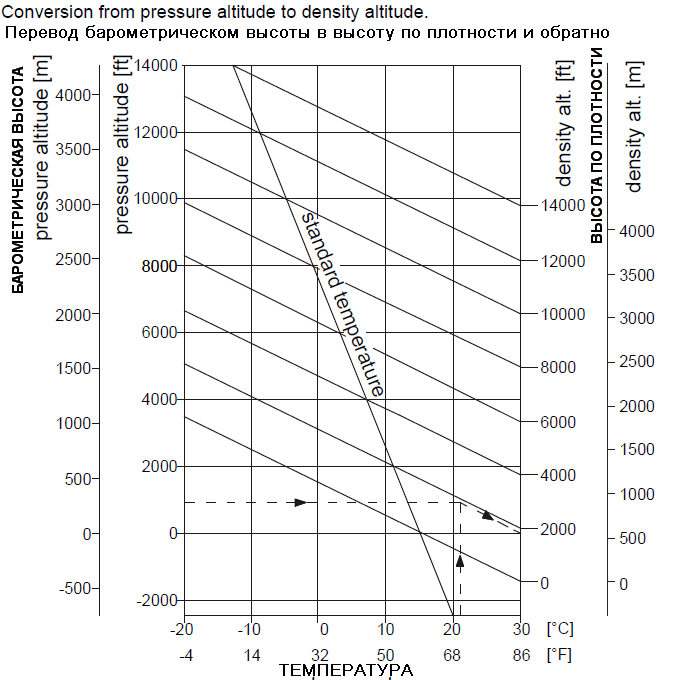 Для температур, высоты и веса между предоставляемых, используется линейная интерполяция между соседними значениями.