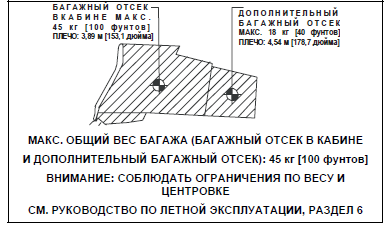 Эксплуатация самолета разрешается только в Соответствии с руководством по летной эксплуатации и требованиями к нормальной категории вне условий обледенения. На самолете разрешено выполнять следующие виды полетов при условии выполнения национальных эксплуатационных требования, установки и исправности соответствующего оборудования: Дневные полеты по ПВП, ночные полеты по ПВП и ППП. Запрещено выполнение любых маневров Высшего пилотажа, включая штопор. Дополнительную информацию об эксплуатационных ограничениях см. в Руководстве по летной эксплуатации. Эксплуатационная маневренная скорость: Vo = 113 узлов (приборная) (свыше 1180 кг / 2601 фунта) Vo = 108 узлов (приборная) (свыше 1080 кг / 2381 фунта до 1180 кг / 2601 фунта) Vo = 101 узел (приборная) (до 1080 кг / 2381 фунта) |