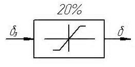 Учитывая, что рулевые агрегаты типа КАУ-30Б, РА-60А и РП-28 имеют ограничения по сигналам автопилота порядка 20% от общего хода органов управления, сервопривод в дальнейшем можно рассматривать, как пропорциональное звено с 20% ограничением (рисунок 7).