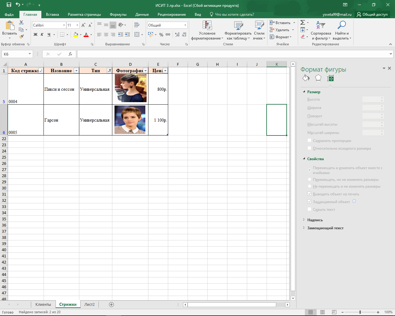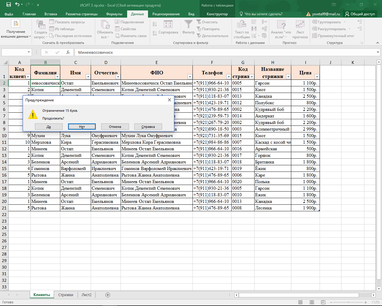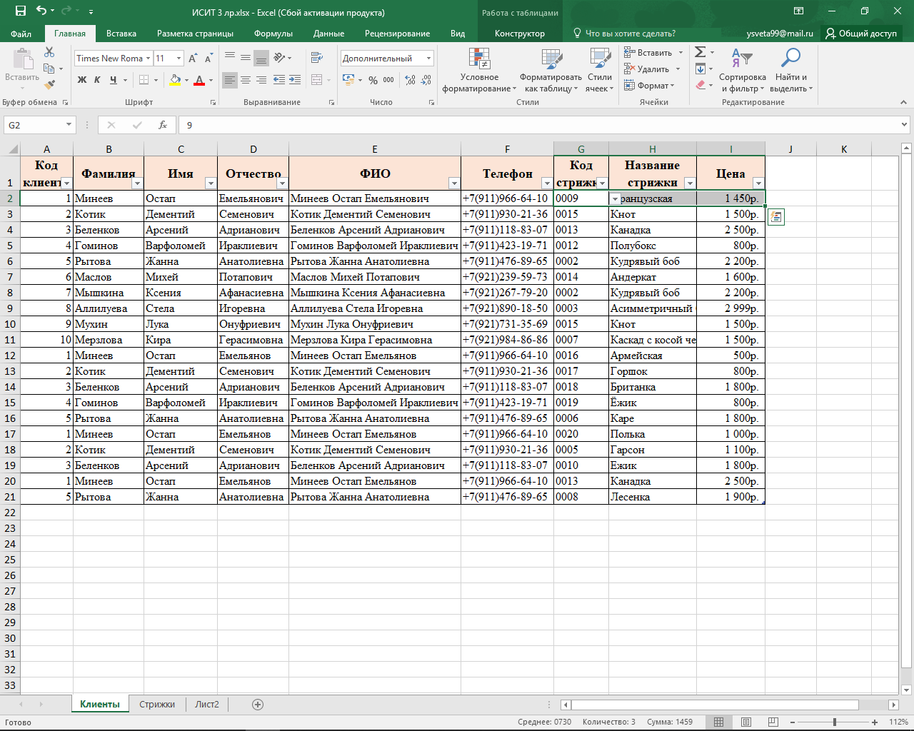 Открыла рабочую книгу, созданную при выполнении лабораторной работы №2