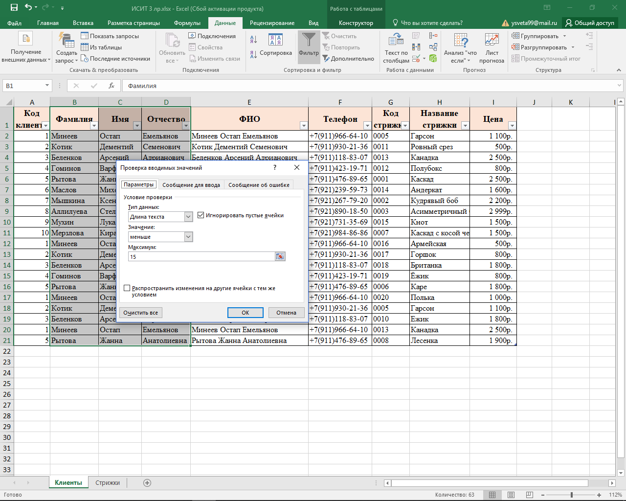 Рисунок 4 – Проверка данных.