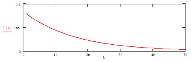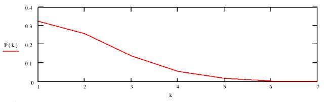 ПРИМЕР. Для СМО с ожиданием график распределения Pk, построенный в системе MathCad, показан на рис.2.