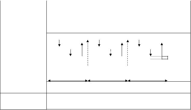 В нижней части рисунков указаны числа действующих станков в первую, вторую, третью и последующие минуты цикла многостаночной работы. Среднее значение I за цикл рассчитаем при n = 3 и n = 4. При n = 4 показатель