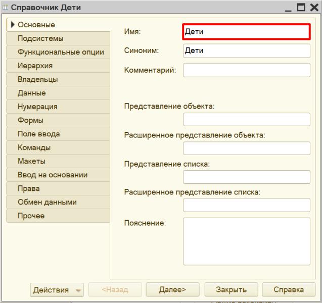 Создадим новый справочник «Дети».