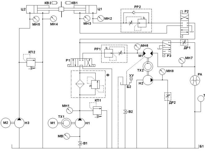 Рис. 1. Схема гидравлическая принципиальная стенда