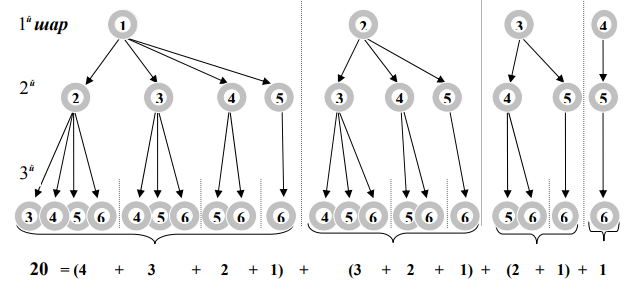 Продолжая дальше, получаем, если m=4, то число возрастающих последовательностей номеров шаров будет равно: