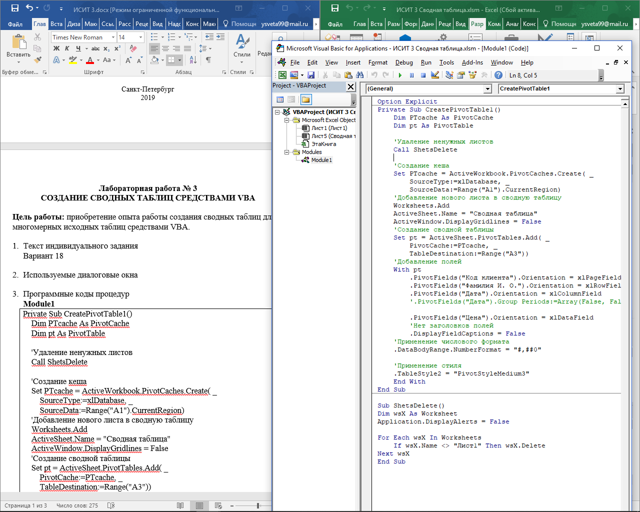 СОЗДАНИЕ СВОДНЫХ ТАБЛИЦ СРЕДСТВАМИ VBA |