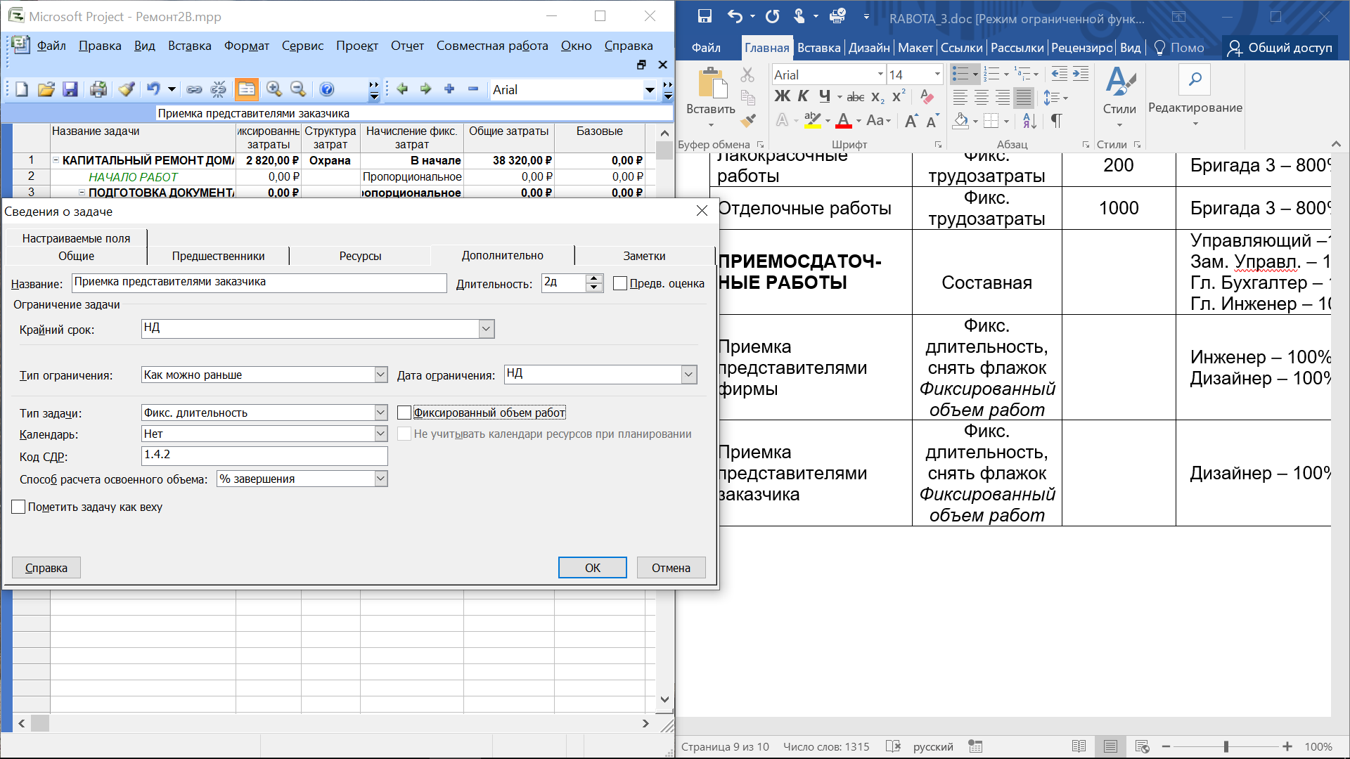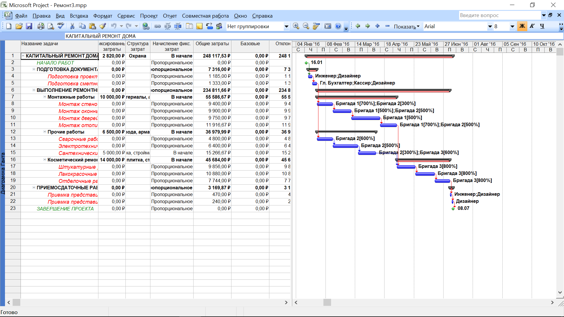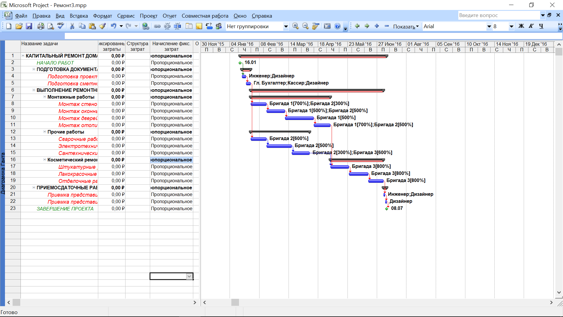 Произведены назначение постоянных затрат по работам проекта, результат работы продемонстрирован на рисунке 3.
