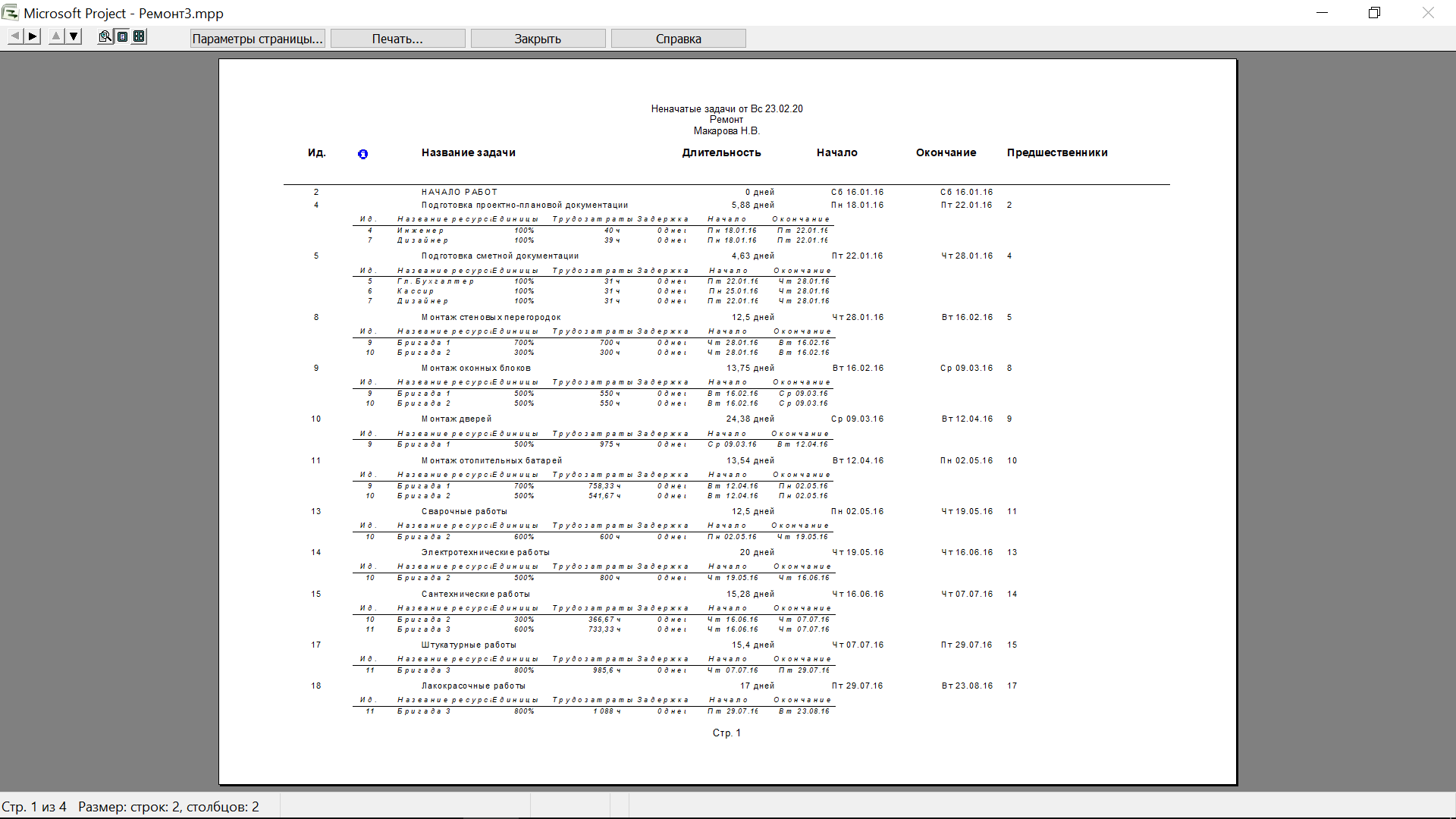 Произведено ознакомление со всеми встроенными в Microsoft Project отчетами. Отчёт по назначению задач продемонстрирован на рисунке 7.