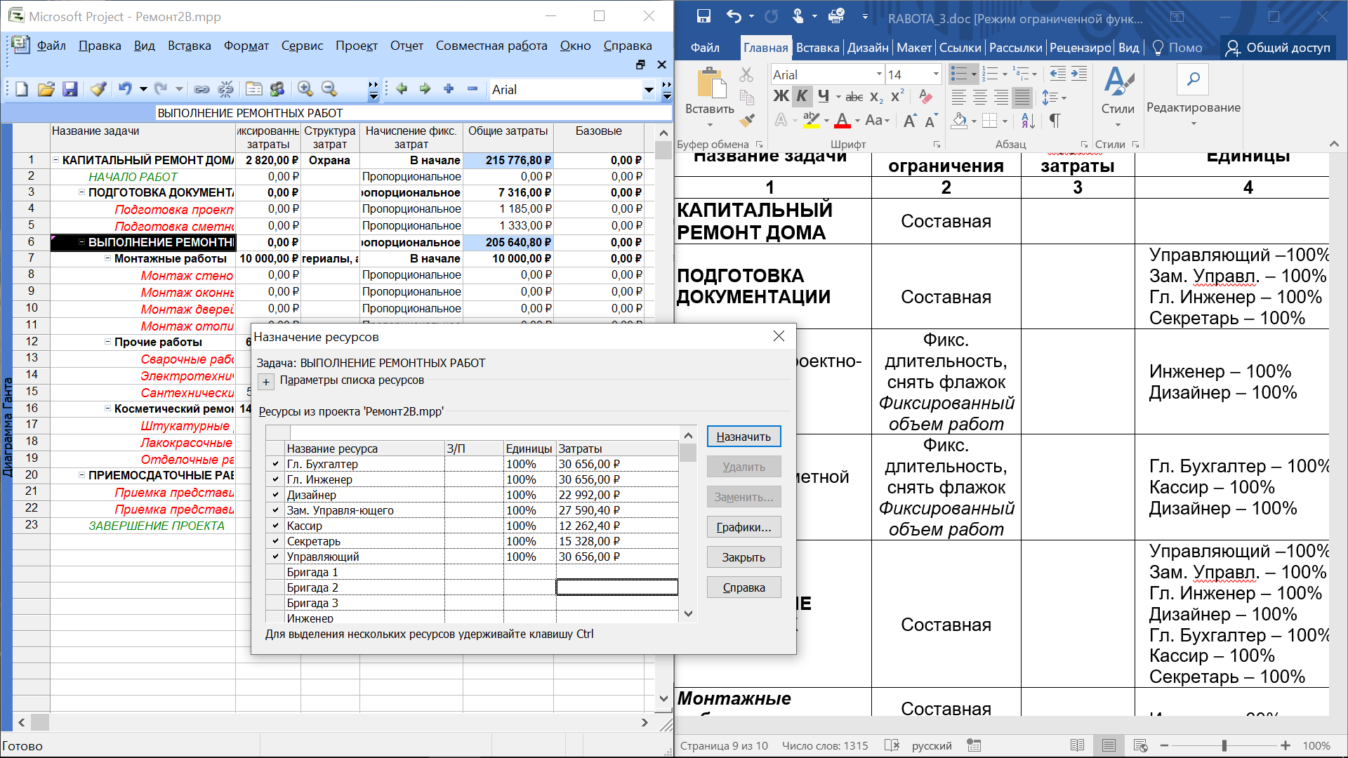 Произведено назначение ресурсов работам проекта, результат работы продемонстрирован на рисунке 5.