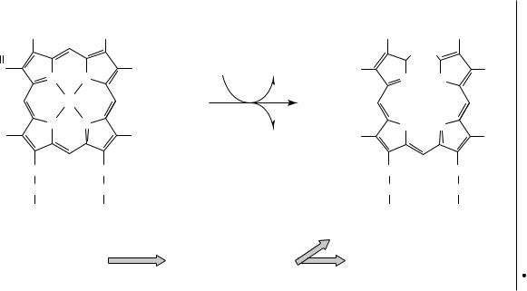 Процесс разрушения гема происходит преимущественно по месту α-метиновой связи при участии микросомального фермента — гемоксидазы. В результате последовательных окислительных реакций вначале образуется вердоглобин, а затем биливердин (рис. 3).