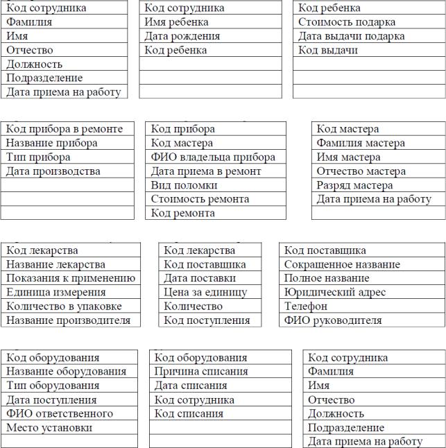 Вариант 1. БД «Учет выданных подарков несовершеннолетним детям сотрудников предприятия»