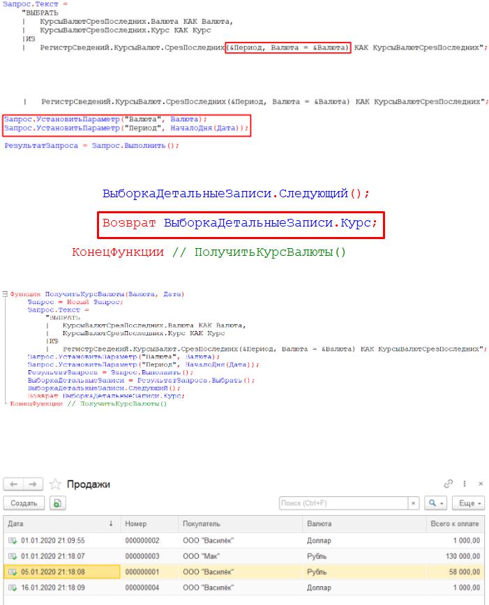Итоговый программный код функции «ПолучитьКурсВалюты» будет таким: